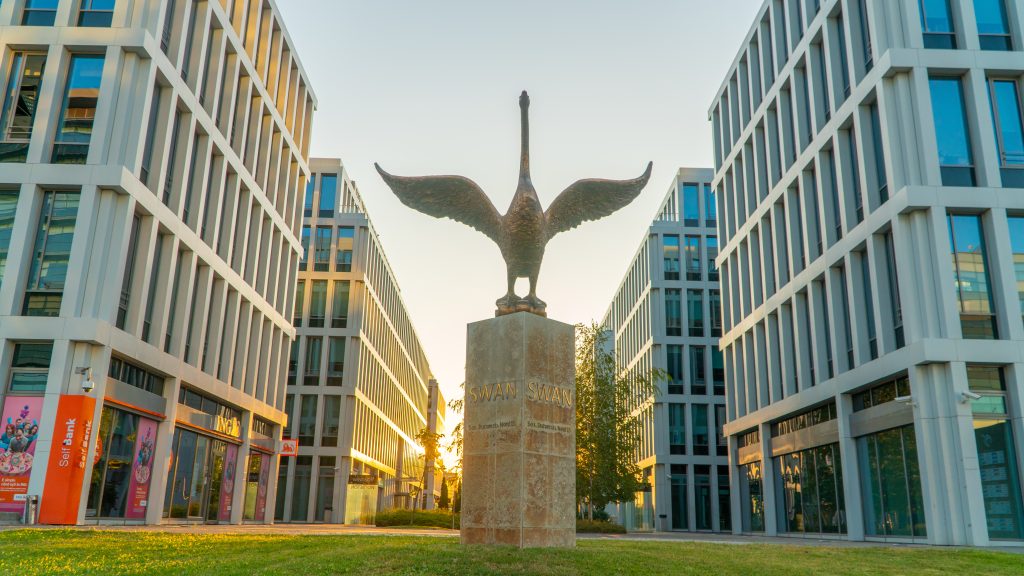 Swan Office & Technology Park comprise three office buildings: Kington Building, Henley Building and Windsor Building, which provides approximately 30,000 sqm of prime office and retail space. The development is sustainability led and holds a BREEAM Very Good certification.