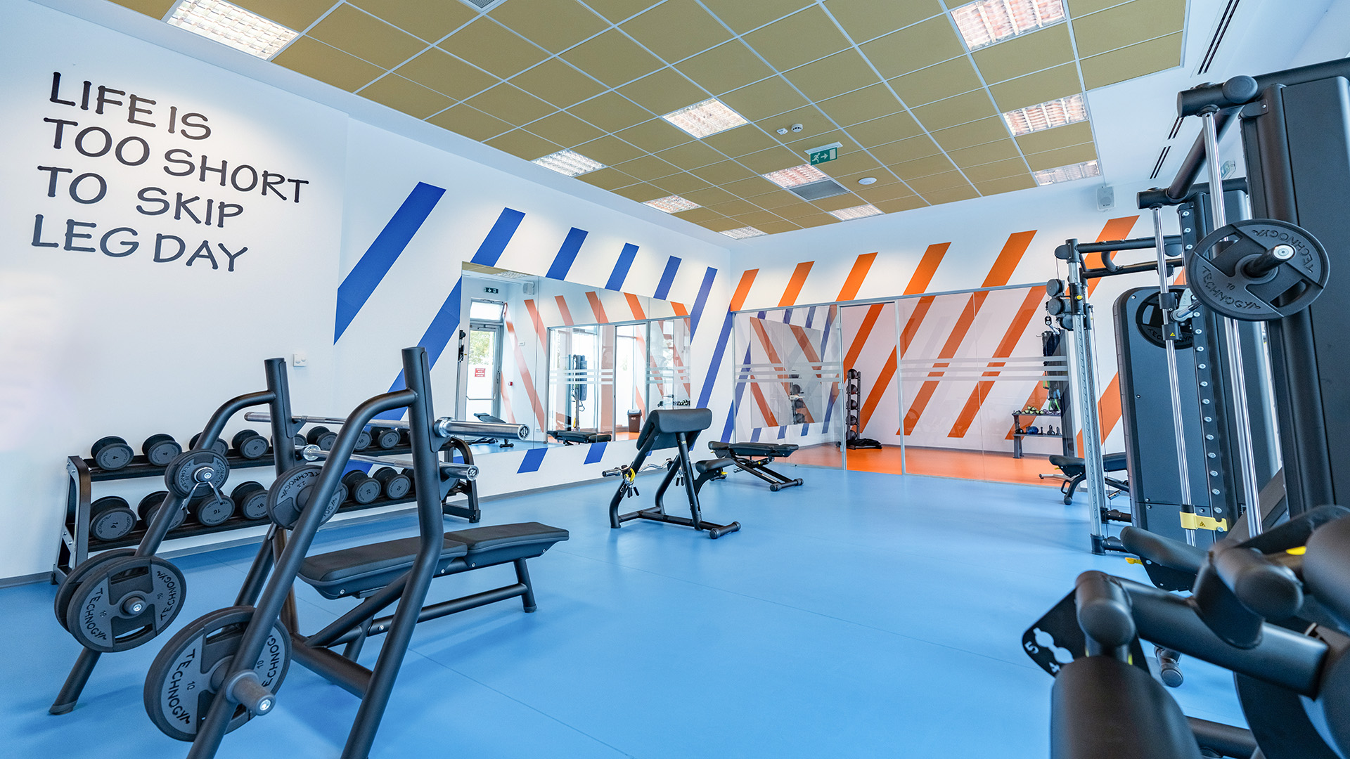 Fully equipped corporate gym with lockers, showers and advanced Technogym equipment